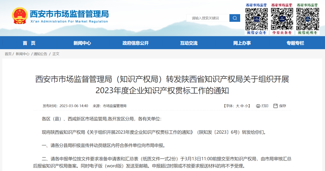 关注!!!西安局受理2023年度陕西省企业知识产权贯标工作通知!